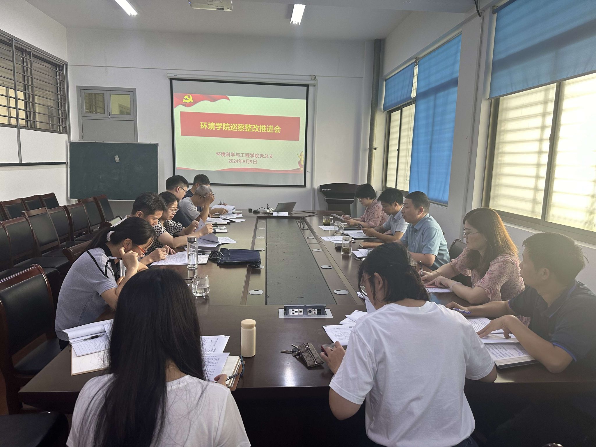 为进一步推进巡察整改工作落到实处、见到实效,9月9日,环境学院召开巡察整改工作推进会,党总支书记孟鑫、院长陈天明、党总支副书记王丽坤、副院长李璇、各系(室)主任、各党支部书记参加会议。