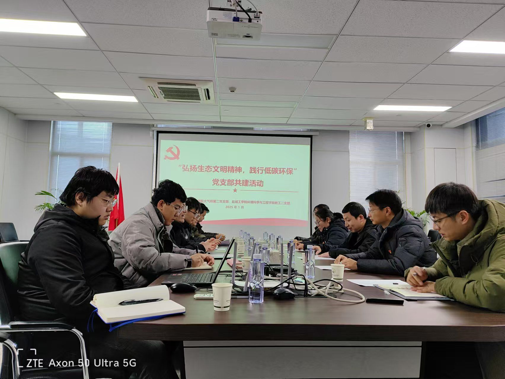 为深入学习贯彻习近平生态文明思想,以高质量党建引领党支部中心工作高质量发展,1月10日下午,我校环境科学与工程学院教工第二党支部与清华大学环境学院大气所第二党支部开展“弘扬生态文明精神,践行低碳环保”主题联学共建活动,清华大学环境学院大气所第二党支部书记陈建军,环境学院党总支书记孟鑫、院长陈天明、教工第二党支部党员代表参加。
