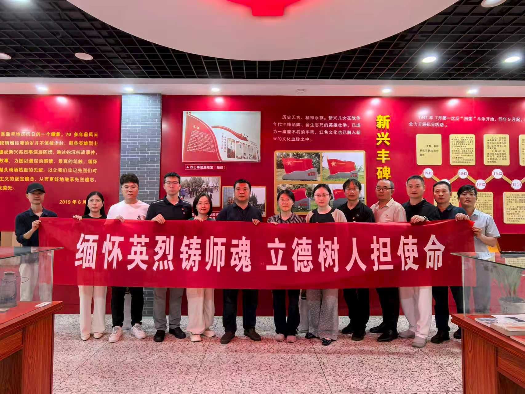 为深入学习贯彻习近平总书记在纪念中国人民抗日战争暨世界反法西斯战争胜利80周年大会上的重要讲话精神,进一步传承红色基因、赓续红色血脉、凝聚奋进力量,9月13日下午,党委研究生工作部党支部书记许伟带领支部党员及入党积极分子前往盐城市亭湖区新兴镇红色教育基地,开展“缅怀英烈铸师魂,立德树人担使命”主题党日活动。