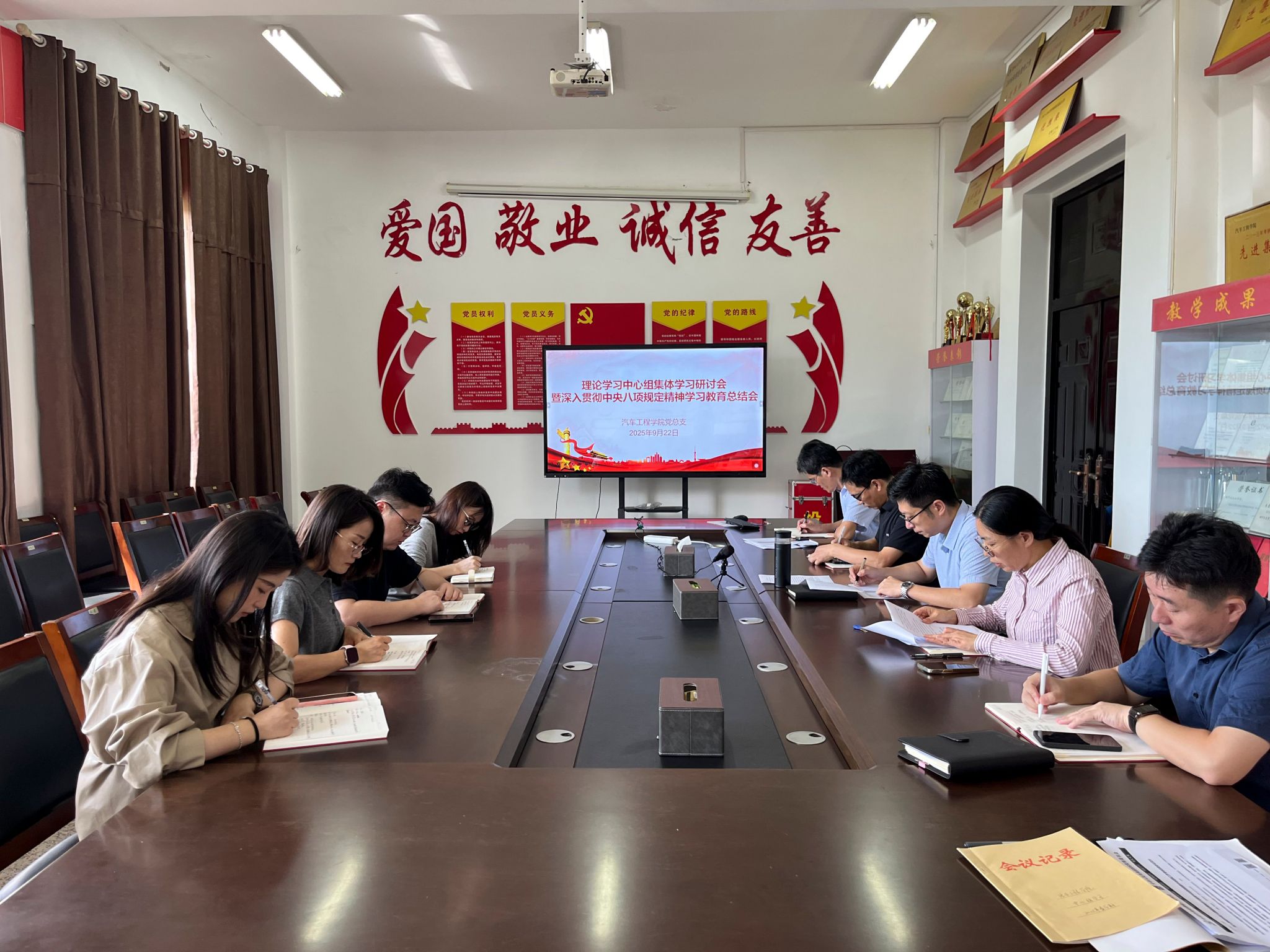 9月22日上午,汽车工程学院党总支理论学习中心组在机械馆A323会议室召开2025年秋学期第一次集体学习研讨会,学习习近平总书记重要讲话精神和《党政机关厉行节约反对浪费条例》,总结党总支深入贯彻中央八项规定精神学习教育开展情况。党总支书记陈青主持会议,党总支理论学习中心组全体成员参加。