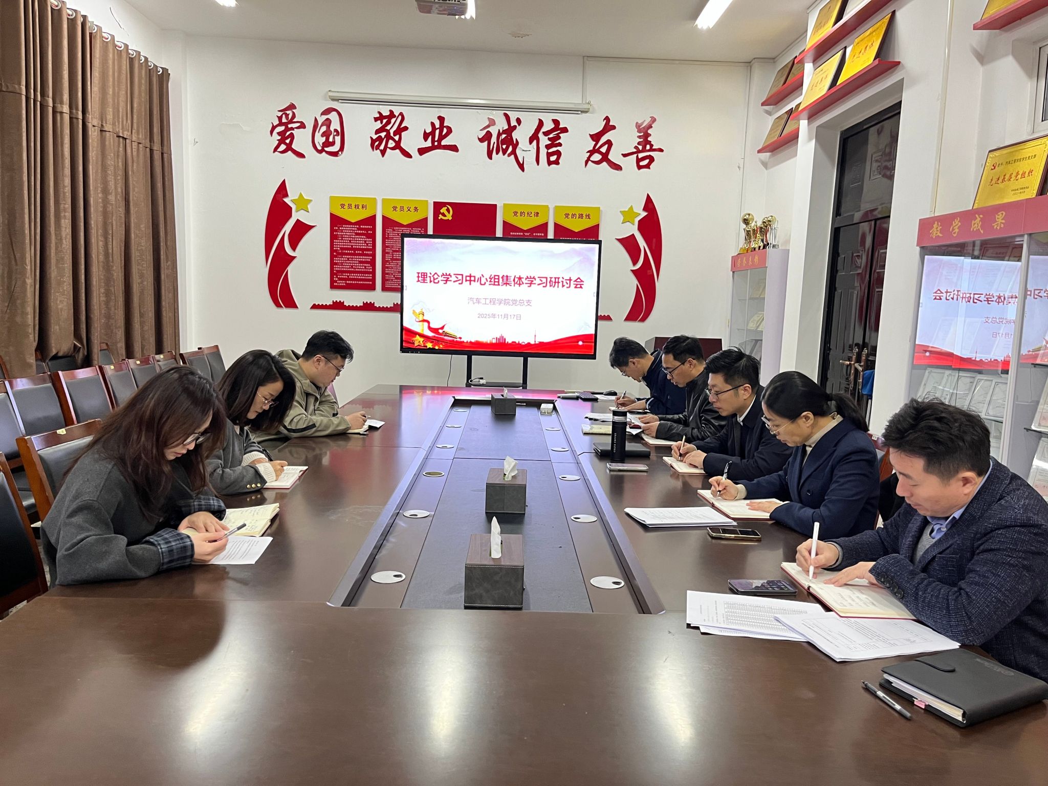11月17日上午,汽车工程学院党总支理论学习中心组在机械馆A323会议室举行2025年秋学期第三次集体学习研讨会,学习习近平总书记在党的二十届四中全会上的重要讲话精神、落实意识形态工作责任制相关制度,党总支书记陈青主持,党总支理论学习中心组成员参加。