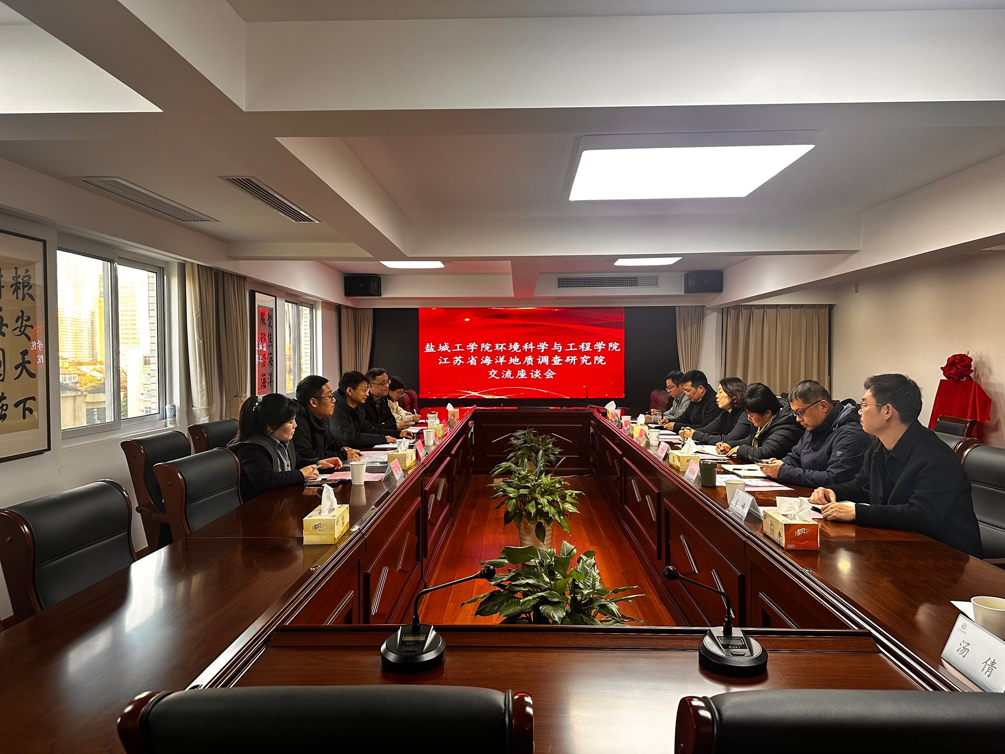 江苏省生态环境保护海涂生态与污染控制重点实验室副主任付强、学院环境科学系主任王忠军、教师代表等共同参加交流研讨。此次合作旨在整合环境学院与江苏省海洋地质调查院的资源优势,推动产学研深度融合,促进应用型创新人才培养,共同助力江苏省海洋经济的高质量发展。
